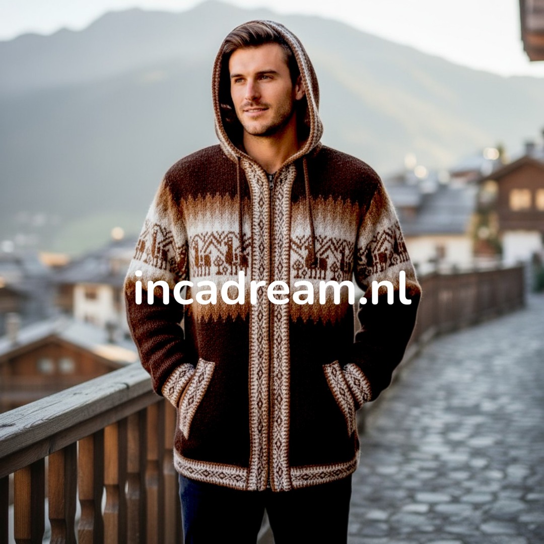 The Alpaca sweater is the perfect addition to your Fall wardrobe. It has the perfect weight and length to be worn as a Fall coat, 2 pockets detail at front with beautiful Andean and Alpacas motifs.