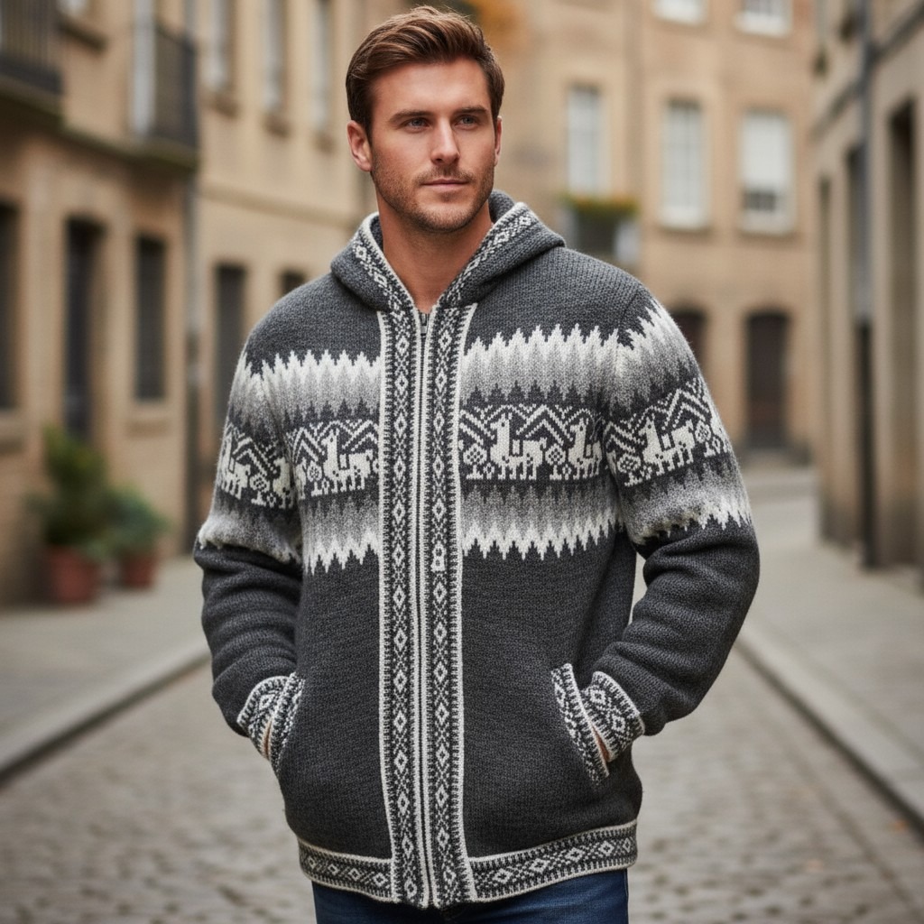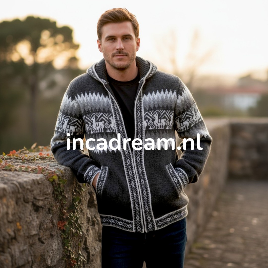 The Alpaca sweater is the perfect addition to your Fall wardrobe. It has the perfect weight and length to be worn as a Fall coat, 2 pockets detail at front with beautiful Andean and Alpacas motifs.